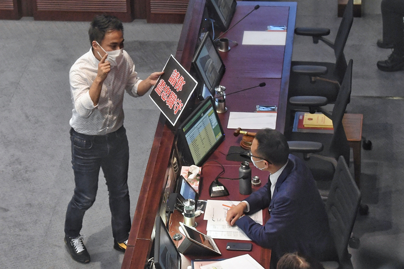 對於郭榮鏗等反對派議員濫用權力,其行為偏離誓言,涉嫌公職人員行為失當,但郭辯稱他是按照立法會議事規則主持會議: