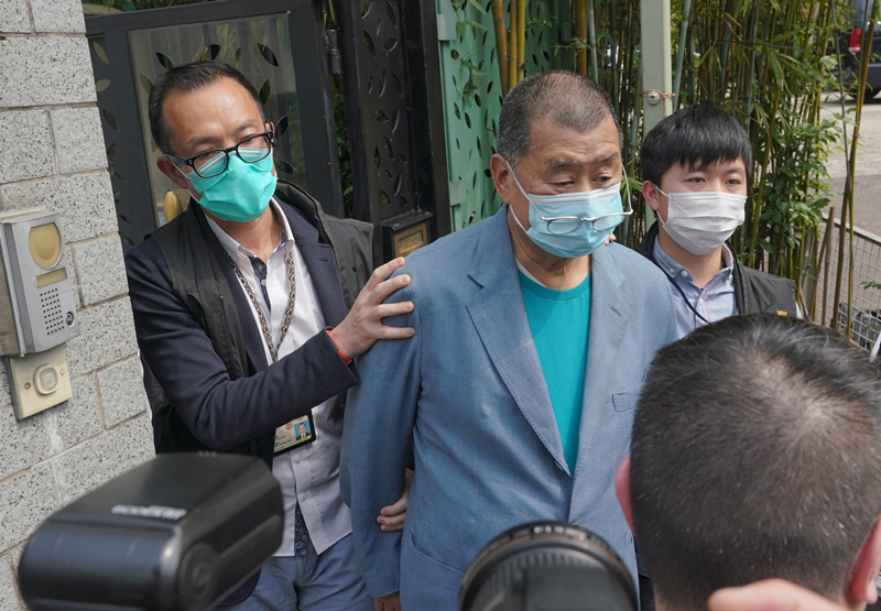 針對香港警方4月18日以涉嫌非法集結罪等罪名拘捕黎智英、李柱銘等15人,港澳辦發言人昨日回答媒體有關所謂「政治檢控」和外國方面所謂「關切」時指,香港警方根據調查的事實及獲得的證據依法對黎智英、李柱銘、李卓人、梁國雄、何俊仁、吳靄儀等15名犯罪嫌疑人予以拘捕,這是維護香港法治、秩序和社會正義的正常執法行動。我們堅決支持。