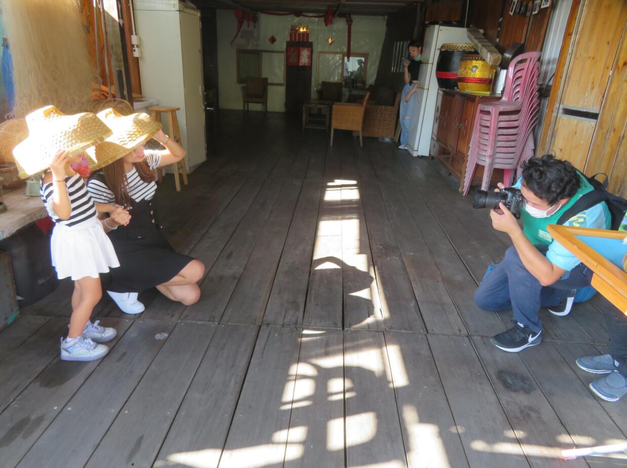 首個秘境在太平街,內裏原來有條磚頭巷,Ivan說它真正名字為同益巷,屋子設計為古磚牆,整條巷都古色古香,同大澳整個環境不太脗合。這裏較少遊人到訪,記者來過大澳遊玩多次,也是首次知悉這條磚頭巷。由太平街向前走是往永安街,食肆及商店林立,我們穿過某商店的長窄巷,到了一片新天地,那是十分開闊的長堤,四五年前由政府美化,它最大的特色是看到一排棚屋,而特點則是一個遊人也沒有,站坐堤上,一排棚屋似近還遠,絕對可以留下獨特美照。開闊長堤在碼頭那邊也有一處。它是粉紅色的,一邊是濕地,一邊是海,它實際是長長的海濱長廊,不知為何,遊人較少,Ivan說它的人氣較前多,已成為影婚紗相的地方。小網紅Queenie與女兒貝貝,在那裏走走玩玩,與大自然來個零距離接觸。