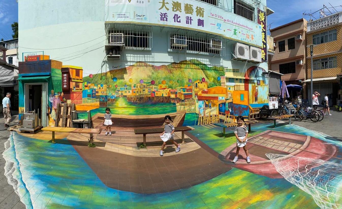 事實上,即使不用特別拍攝方法,單純地與壁畫同影也很不錯,因為它們很漂亮,也很有意思,呈現了大澳水鄉之美及文化。壁畫目前共有7幅,是大澳藝術活化計劃「一壁一畫一故事」的作品,計劃由香港歷史文物保育建設贊助,大澳鄉事委員會及大澳非茂里合作推行。
