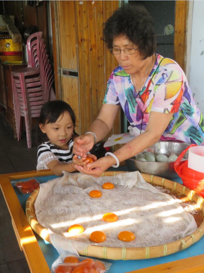 貝貝在導師樊女士指導下,學整曬鹹蛋黃有板 有眼。