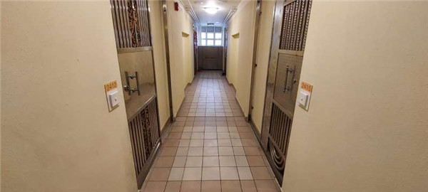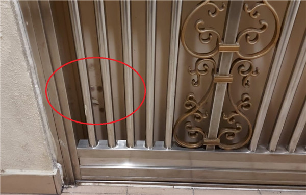 涉案單位大門有燒焦痕跡。