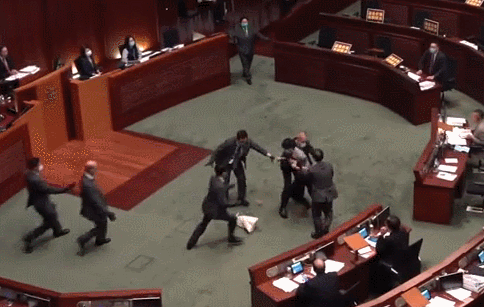 不过,后来民主派议员许智峯使出歪招,在会议现场审议过程中掟出的「臭弹」,消防和警察一度封锁会议厅搜证调查,导致会议被阻6个多小时。