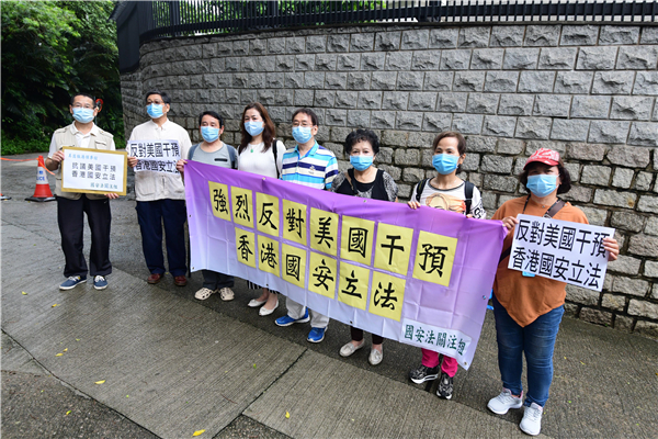 此外,一群市民昨日亦到美國領事館,抗議美國踐踏國際關係準則,干涉中國主權和安全。他們重申香港是中國的一部分,有責任和權利維護國家的主權和安全,不能夠成為國家安全的缺口。他們表示,任何國家都有維護國家安全的法律,中央今次主動出手制訂「香港國安法」合理合法,促請美國政府尊重。