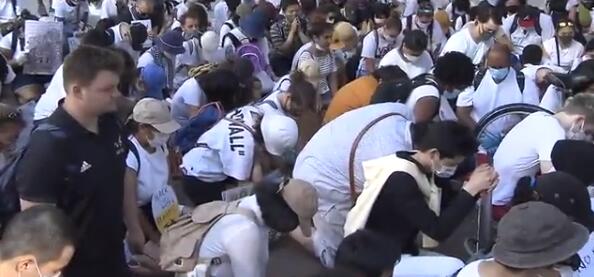 一名参与示威活动的美国女教师愤慨地说:“我无法忍受像我这样的黑人每天都被杀害。”一名35岁的美国黑人男子也表示:“我们是和大家一起的人,我打心底里想做点什么”。游行的最后,在黑人男子弗洛伊德被警察掐住脖子的时间——8分46秒,全体人员进行了默哀。