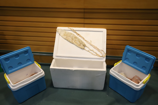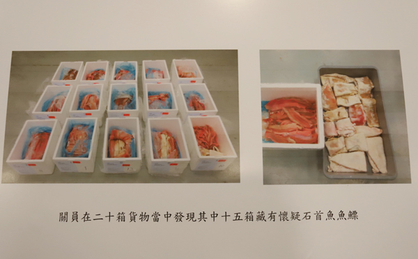 海關在15個發泡膠箱中檢獲270條走私魚肚。