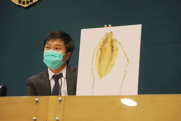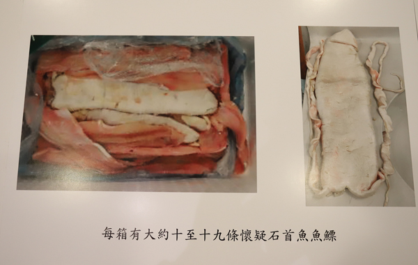 關員展示檢獲的石首魚魚肚。