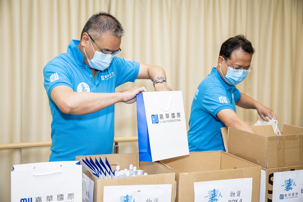 「一嘉人」義工隊準備了「一嘉人」打氣包及香米派發予獨居長者,打氣包當中包括口罩、消毒搓手液、消毒濕紙巾及打氣卡,當中大部分物資更是由嘉華國際員工所募捐或自製,充份體現出「一嘉人」精神及對社區的關愛。