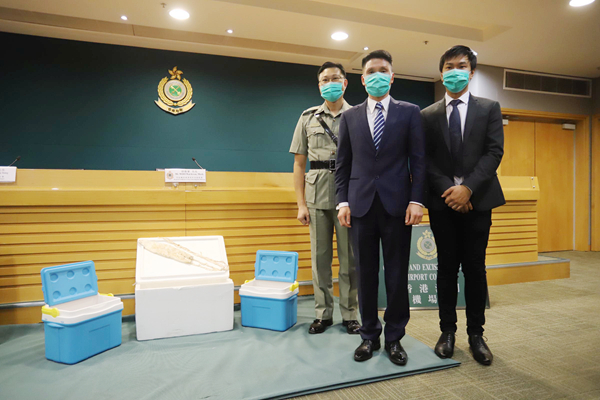 海關機場科空運貨物課監督劉青龍昨日表示,上周四透過風險評估,搜查一批來自美國洛杉磯的魚柳,因從洛杉磯運港魚柳不常見,且貨物寄貨地址是旺角一幢商業中心,關員遂使用X光機進行掃描,結果發現貨物密度有異,部分影像均有魚頭和魚尾,另外多箱均呈異樣,其後打開20個發泡膠箱,發現有15個內藏魚柳冰磚,經解凍後在冰磚中檢獲270條走私魚肚,共重160公斤,經檢驗後懷疑是受管制的石首魚魚肚,估計市值約2500萬元。今次為海關首次檢獲鮮石首魚魚肚,過去所檢獲的均為乾貨。