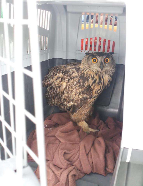 貓頭鷹送往嘉道理農場。(警方Facebook圖片)