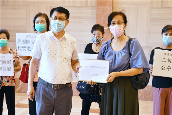 選管會派代表 (前排左一 ) 接收柴灣居民請願信 。