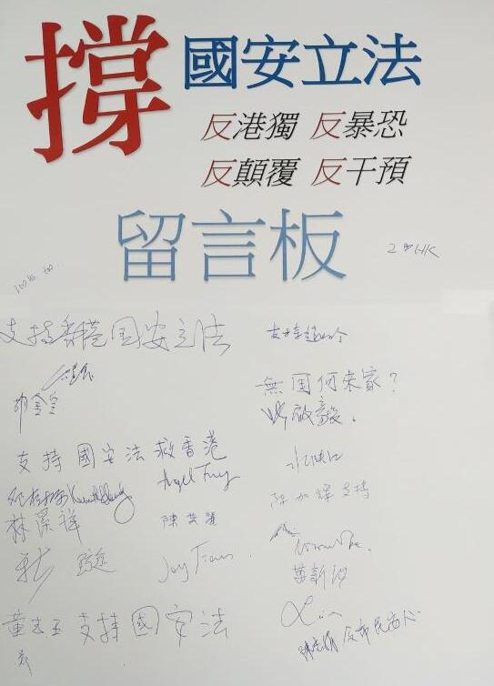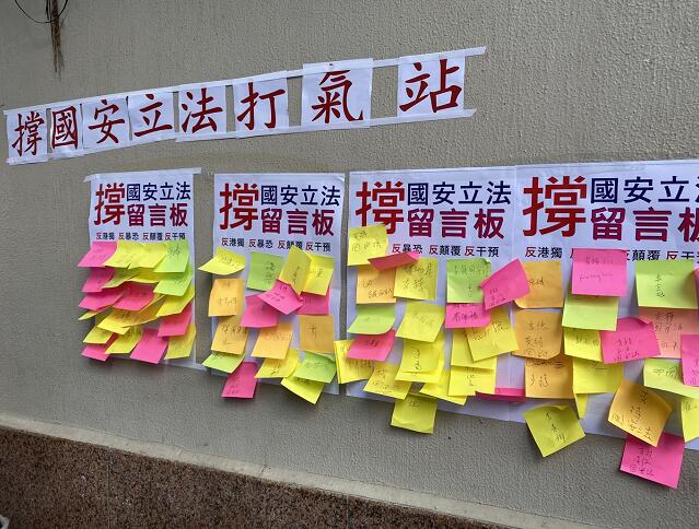 6月13日开始,撑国安立法联合阵线街站重现社区、街头,市民纷纷驻足,在留言板、打气站留下心声,支持国安立法,拒绝揽炒害港。