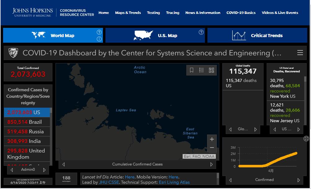 另據約翰斯·霍普金斯大學的統計數據顯示,截至14日7时33分,全球新冠肺炎確診病例近776万例,死亡近43万人。其中,美國新冠肺炎確診病例超过207萬例,死亡115347例。美國疾控中心預計,到7月4日,美國的死亡人數將可能升至12.4萬人到14萬人左右。