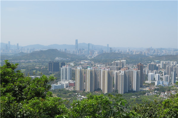 天氣良好,蝴蝶山徑可遠望至深圳羅湖,最前方樓群為清河邨。