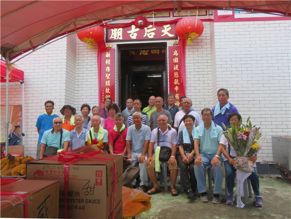 新村天后古廟開光儀式於6月22日上午10時至下午1時舉行,包括道士唸經、為神像開光點睛、切金豬、村民上香及參與轉運儀式等。不少村民來上香時,以手推車盛載祭品。村民參與轉運儀式最為踴躍。這儀式由道士主持帶領,籌委會主席梁錦興則負責手拿運錢,向每個村民頭部打圈,象徵轉運,之後村民跨過地下火把,完成整項轉運儀式,祈求方方面面順遂如意。