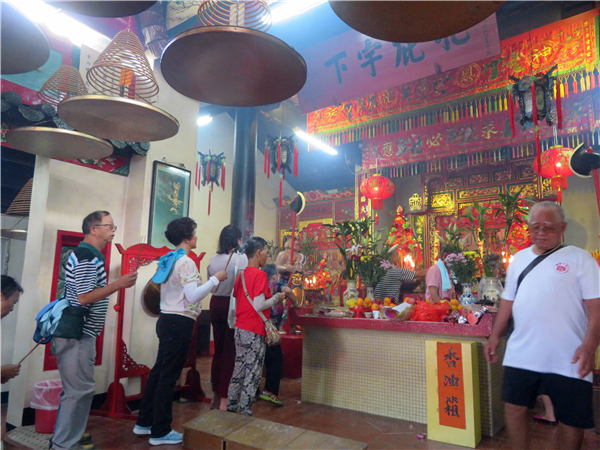 善信於煥然一新的古廟上香。