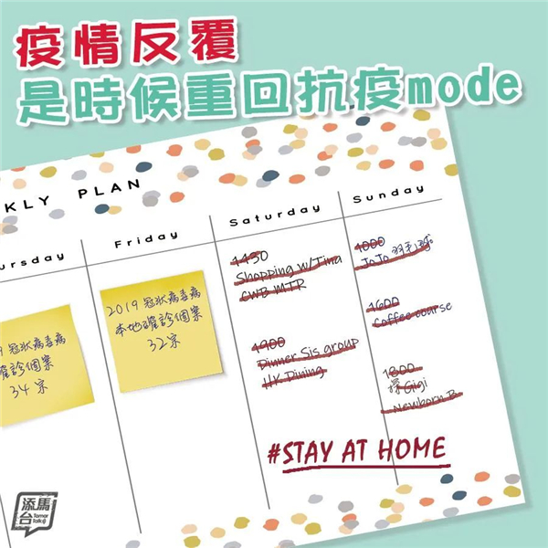 港府昨日(10日)也在社交媒体发文称,最近短时间内出现多宗源头不明的本地个案是一个重要的警号,提醒社会大众在防疫抗疫方面不能松懈。大家紧记与他人保持适当社交距离、注意个人及环境卫生、勤洗手、戴口罩,齐心切断病毒的小区传播链。