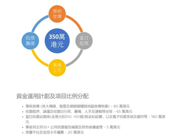 2.公民投票程序、论坛及投票日行政、人员等安排有关费用共计65万港元;