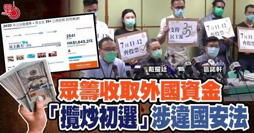 众筹收取外国资金 揽炒「初选」涉违国安法