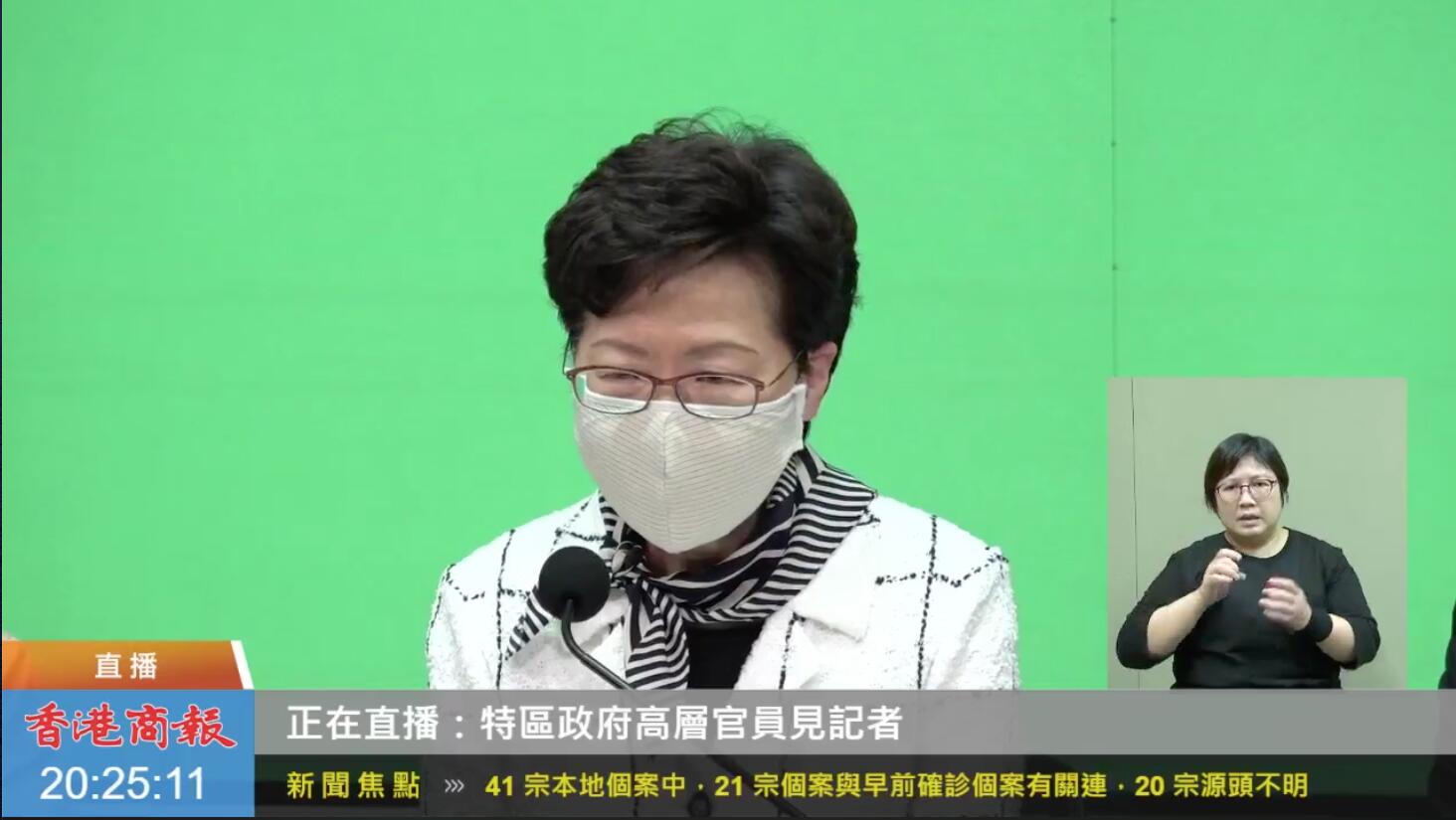 【香港商报网讯】记者梁希贤报道:本港爆發新一波新冠肺炎疫情,今日新增52宗確診個案,當中包括41宗本地個案。行政長官林鄭月娥晚上8時舉行記者會,宣布進一步收緊限聚令等一系列措施,主要包括:餐飲業下午6時至明早5時不准堂食,周三(15日)起強制乘坐交通工具要戴口罩;高风险地区来港者登机前出示病毒检测阴性才能上飞机;限聚令恢复至四人。