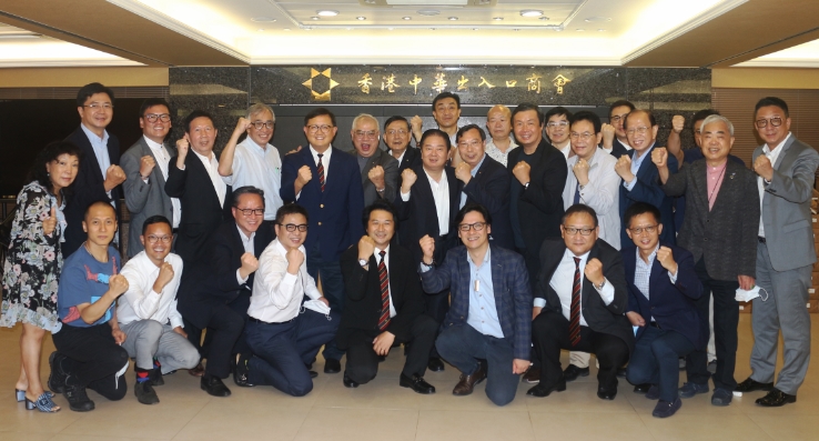 中出會長、前任會長及常務會董等多人力撐黃英豪(二排左五)參選立法會進出口界功能組別。