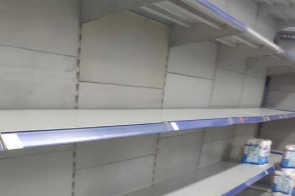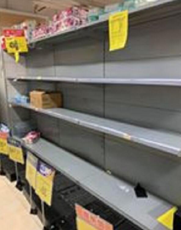 多區超市貨架的廁紙、大米等必需品仍被搶購一空。圖:fb