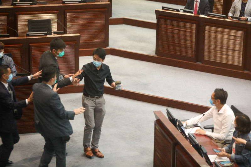 許智峯在立法會會議室內投擲污穢物。圖:橙新聞