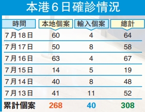 昨增64宗確診 60宗本地