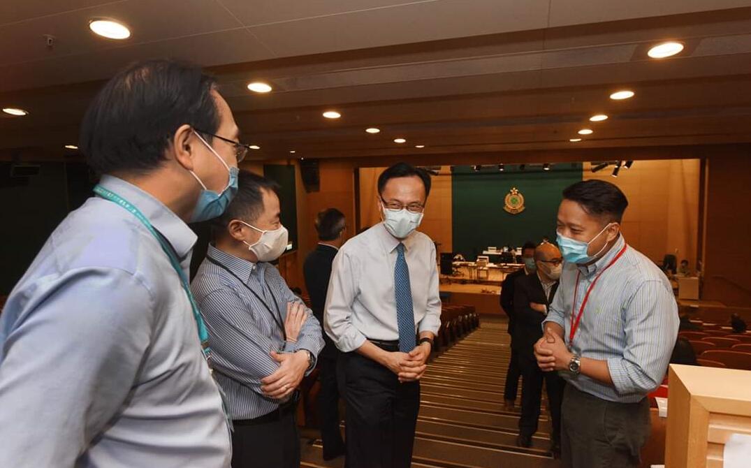 【香港商报网讯】记者木子报道:香港疫情來勢洶洶,公務員首天在家工作,但仍有六成人要繼續上班以維持必要的服務。公務員事務局局長聶德權到訪位於北角海關總部大樓的家居檢疫控制中心,為在前綫參與抗疫工作的同事打氣。他表示,這是一場持久戰,一定要減少人流和社交的接觸。