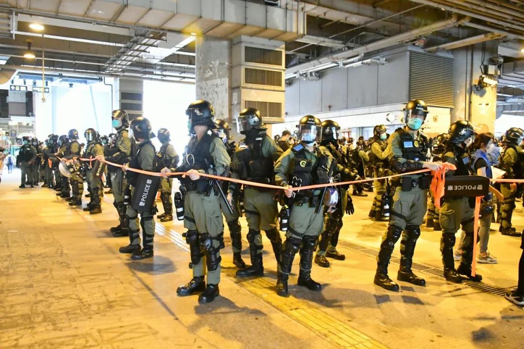 之后,有警员拉起封锁线围着林卓廷等人,并带到一角截查,现场发生混乱。林被截查期间展示横额,警方警告或会控告他阻差办公。