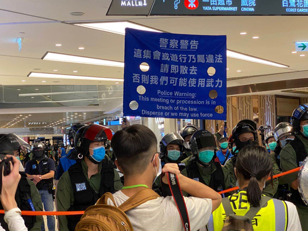 防暴警察到现场戒备,并截查多位出席人士,以违反限聚令的理由发出罚款单,场面一度混乱。