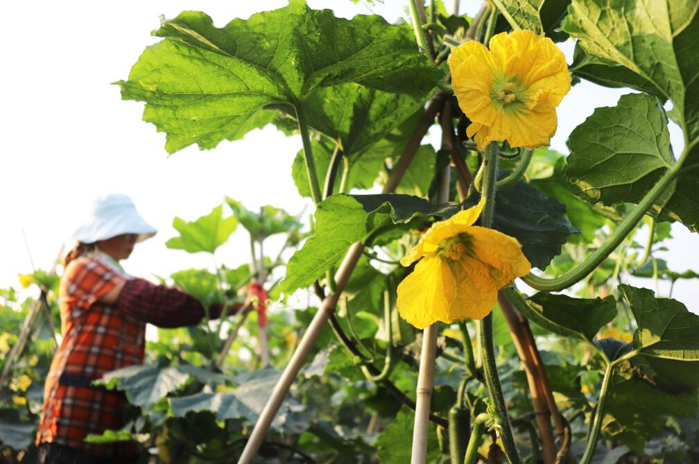 大暑農事忙。圖為河北玉田縣一村農民昨日在田間管護冬瓜秧。新華社
