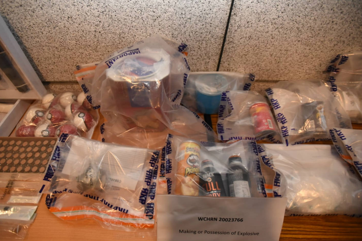 被捕兩名男子分別姓袁(29歲)和姓李(31歲),報稱任職會計文員和科學學習班導師,涉嫌「導致相當可能會危害生命或財產的爆炸」,其中姓李男子同時涉嫌「管有炸藥」罪名,現仍被扣留。