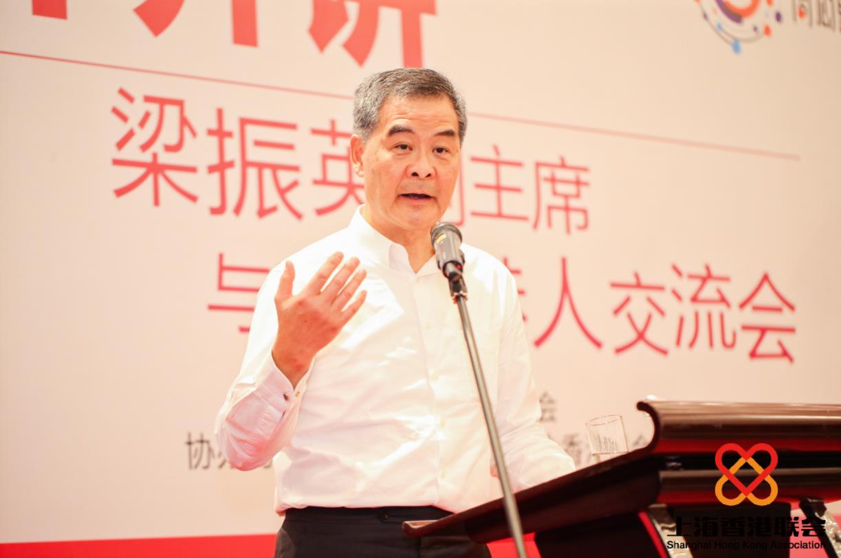 梁振英在滬勉勵港人們為香港未來努力。圖:上海香港聯會