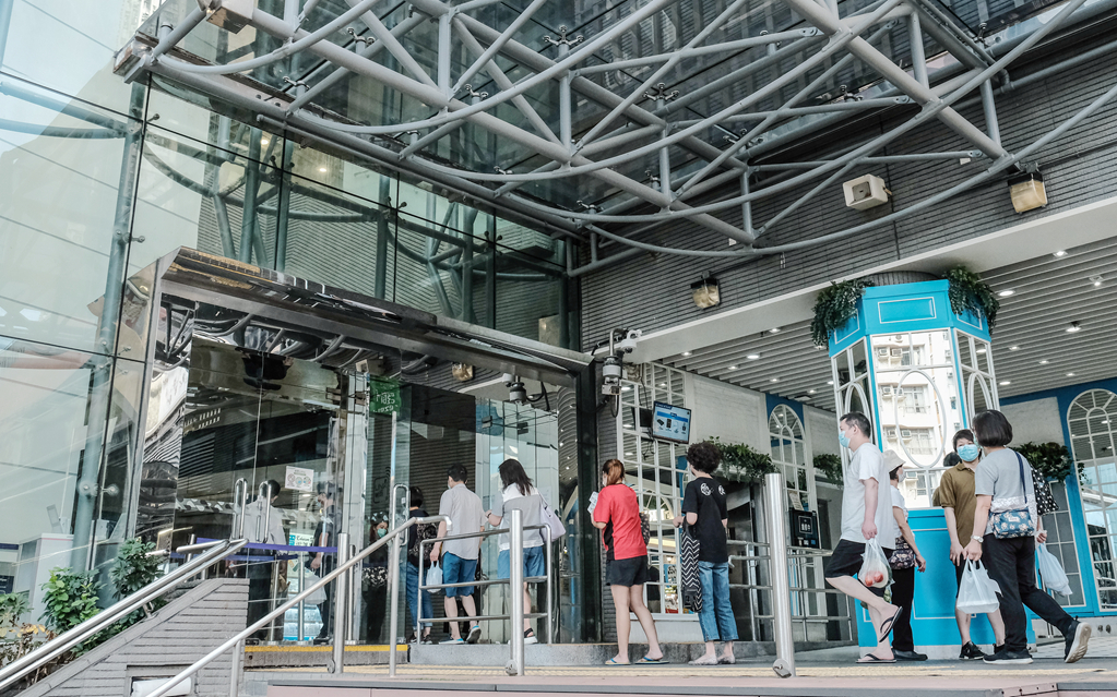 在疫情重災區黃大仙區,大批市民在區內位於斧山道的東九龍普通科診所外排隊,昨日7時半前全日110個名額已經額滿,有多名身穿全身保護衣物的職員派發樣本瓶予輪候市民,約10分鐘派發完畢。