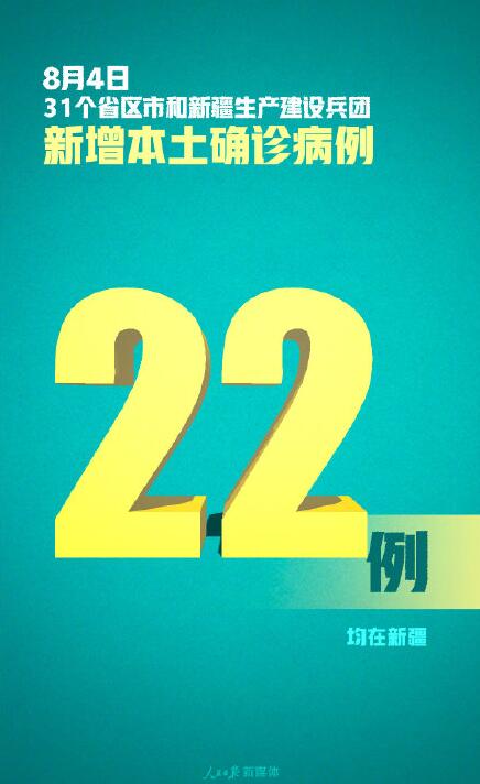 【香港商報網訊】8月4日0—24時,31個省(自治區、直轄市)和新疆生産建設兵團報告新增確診病例27例,其中境外輸入病例5例(上海2例,北京1例,四川1例,陝西1例),本土病例22例(均在新疆);無新增死亡病例;無新增疑似病例。
