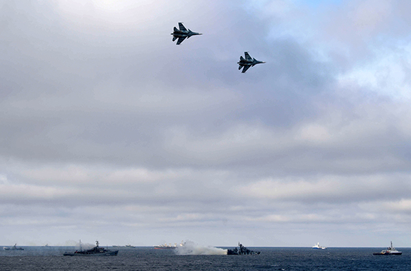 1月9日,在克裡米亞半島附近的黑海海域,俄羅斯艦船和飛機參加演習。(新華社/路透)