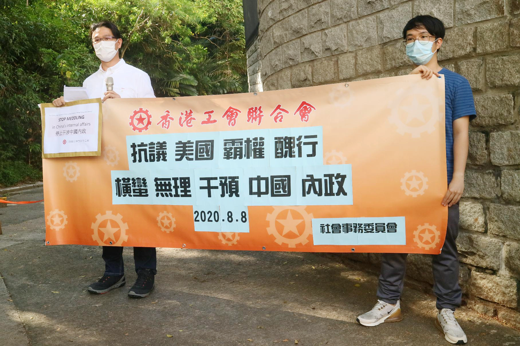 工聯會抗議美國無理干預香港事務。記者馮瀚文攝
