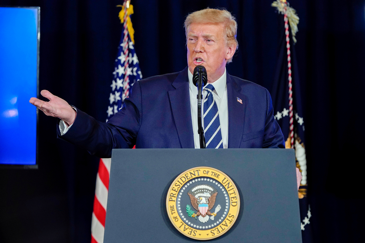 【香港商報网訊】綜合外媒消息,當地時間7日晚間,特朗普在美國新澤西州貝德明斯特召開記者會,對中國問題,又是不假思索,張口就來。而實際上,經濟學人雜誌當天公布的最新預測則指,美國總統特朗普在11月3日大選的選情不樂觀,僅有2%的幾率贏得過半數選票,估計會獲得45.5%的選票;至於贏得大多數選舉人團幾率,也只有10%。