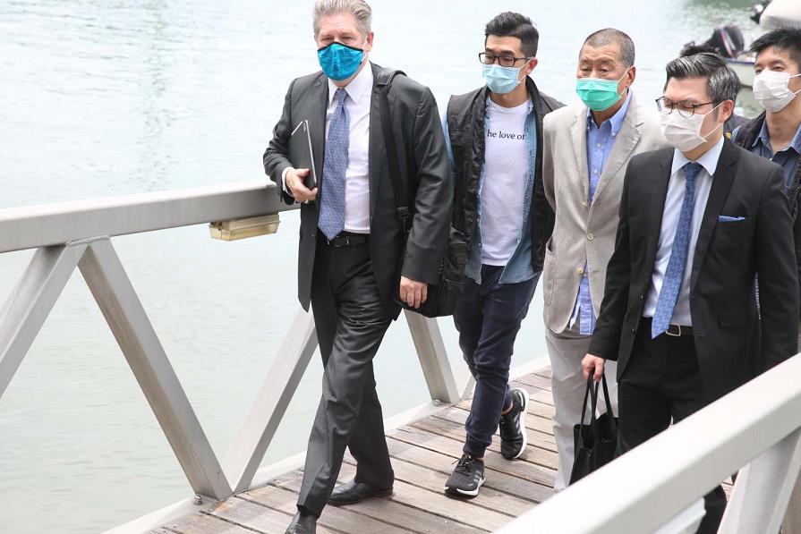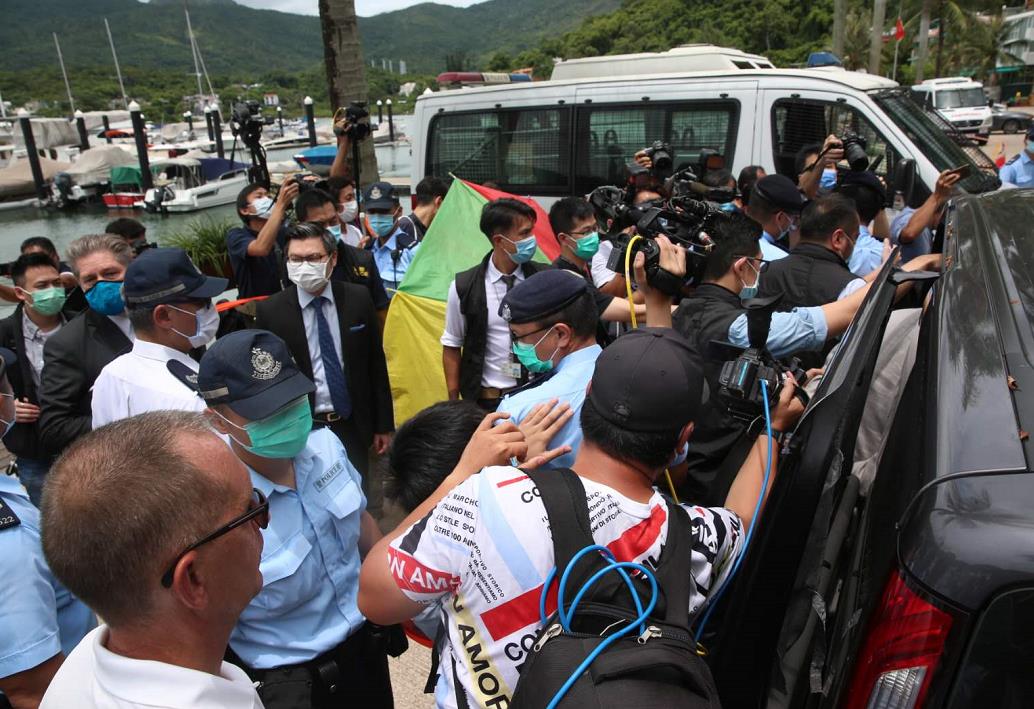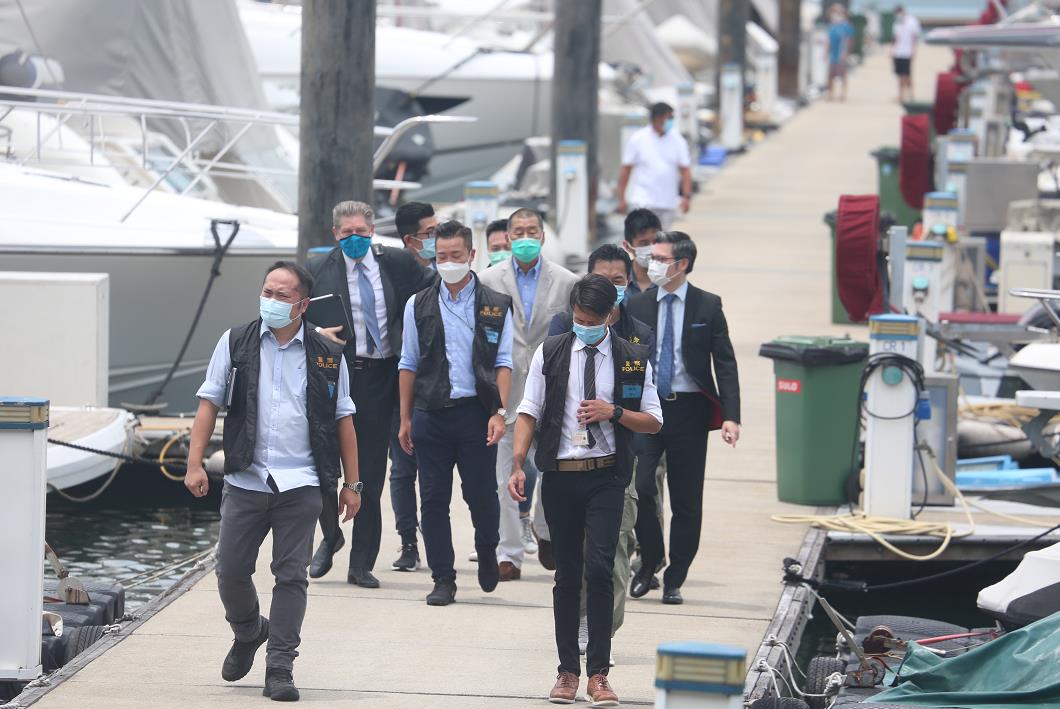 黎智英昨晚被通宵扣留,今早晚押往西貢遊艇會搜證。