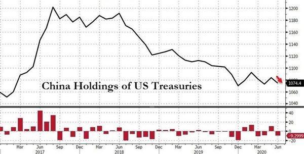 美國財政部於8月17日發布的數據顯示,2020年6月日本所持美債規模升至1.261萬億美元,中國所持美債則增降至1.074萬億美元。