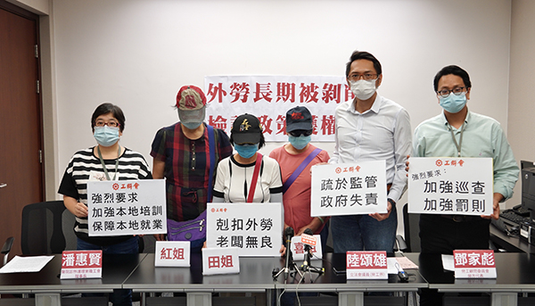 工聯會8月26日舉行記者會,促請政府關注本港的安老院舍外勞員工被剝削的情況,及改善其權益。