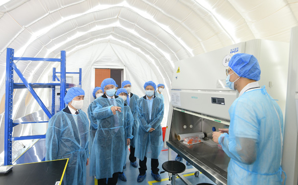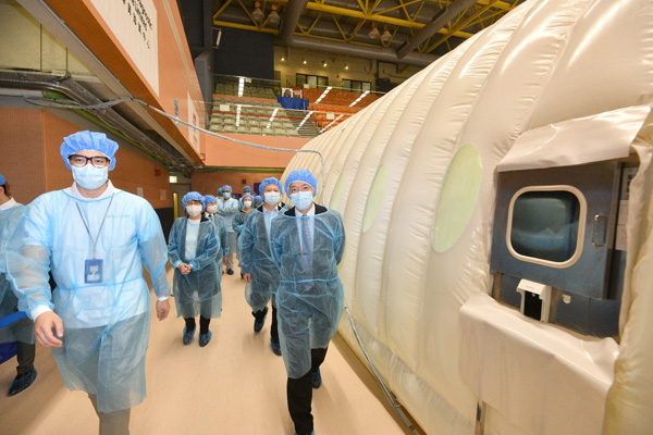 為協助香港在短時間內開展「普及社區檢測計劃」,支援隊已於早前積極籌備臨時實驗室的工作,藉以大幅提升香港的病毒檢測能力。特區政府檢測工作組(工作組)組長、食物及衛生局常任秘書長(衛生)陳松青,與支援隊隊長余德文,聯同工作組組員和支援隊隊員,26日到中山紀念公園體育館,視察臨時氣膜實驗室的準備情況和檢測程序的細節。負責配合支援隊設置並運作臨時氣膜實驗室、屬華大基因在港的合資公司的華昇診斷中心代表,在現場詳細介紹各方面的準備工作及臨時氣膜實驗室運作流程。