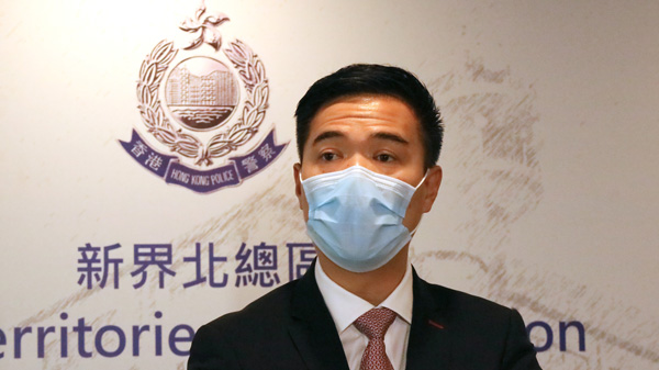 新界北總區高級警司(刑事)陳天柱26日下午在記者會上講述案情。(記者 馮瀚文攝)