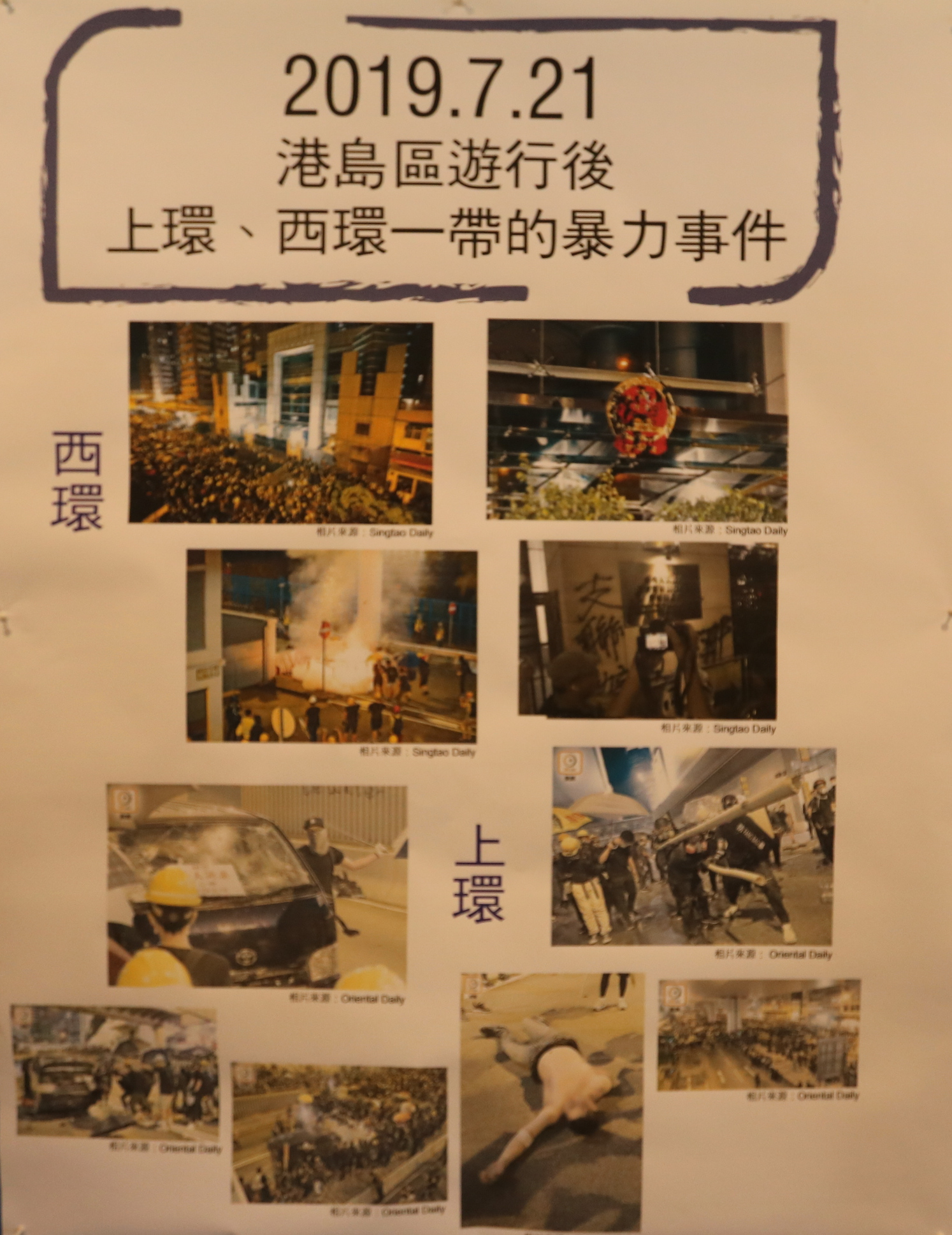 警方發佈7.21當日在上環和西環的暴動事件圖片,事後在元朗演變成衝突。