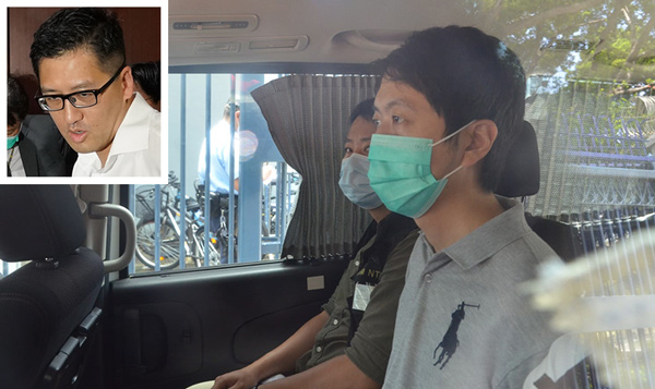 許智峯被捕後由警車押送上水警署。小圖為涉參與暴動的林卓廷。