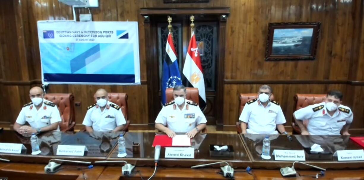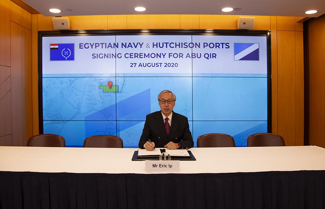 埃及海軍總司令Ahmed Khaled Saied中將與和記港口集團董事總經理葉承智聯合主持網上簽約儀式,參與者還有和記港口香港和英國管理層。