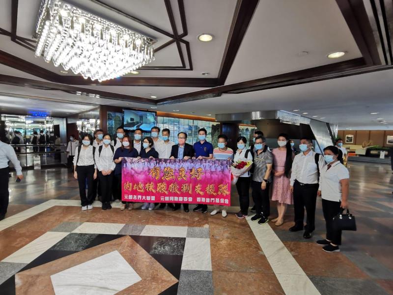 元朗各界大聯盟、元朗同胞慶委會、香港普門基金會主席團,聯同地區代表,帶同元朗區150 個基層團體的慰問卡及網民的心意卡,於8 月28日 中午來到九龍維景酒店,歡迎由國家衛健委李大川先生帶領的「內地核酸檢測支援隊」佰多名成員,並向中央政府及內地核酸支援隊無私護港轉達基層市民的謝意。