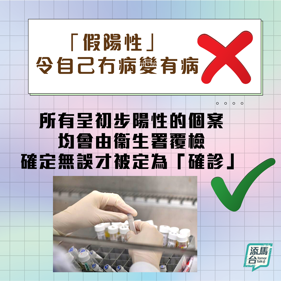另有誤導資訊失實誇大檢測中心的感染風險,亦對檢測的準確性及所謂的「假陽性」危言聳聽等。港府提醒市民收到有關資訊時必須查核真偽,最佳做法是瀏覽普及社區檢測計畫專題網站communitytest.gov.hk,以獲取正確資訊。