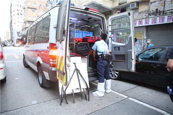 警員穿上鞋套進入涉案單位搜證